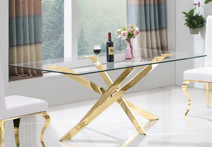 Design Table à Manger Daimond Inox Verre Or de Salle à Cuisine 180x90 | ✔ Vérifier en magasin | €1,108.24 |