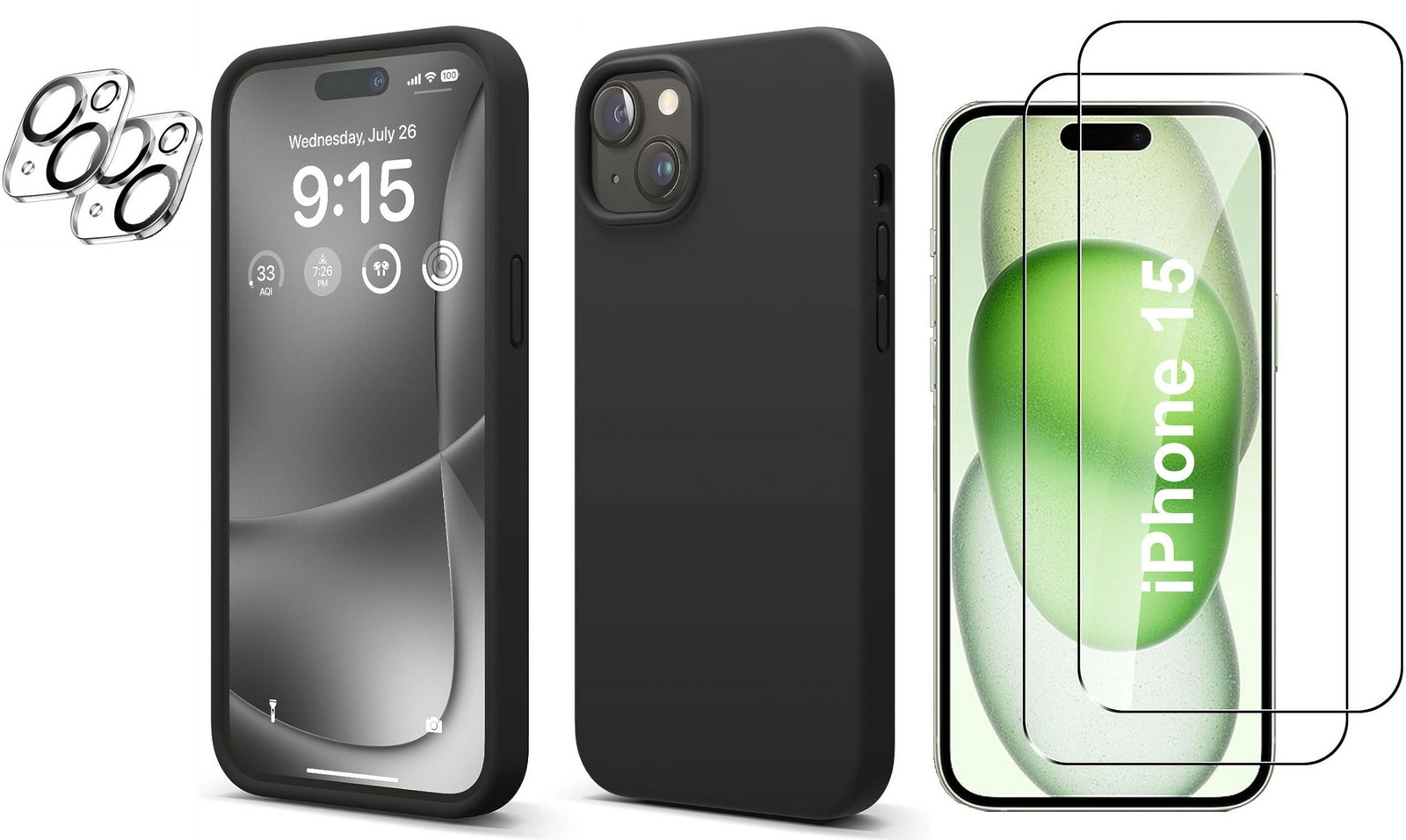 Contenu du Paquet: Coque Noir + 2 Protection Ecran et Camera Pour iPhone 15 Little Boutik