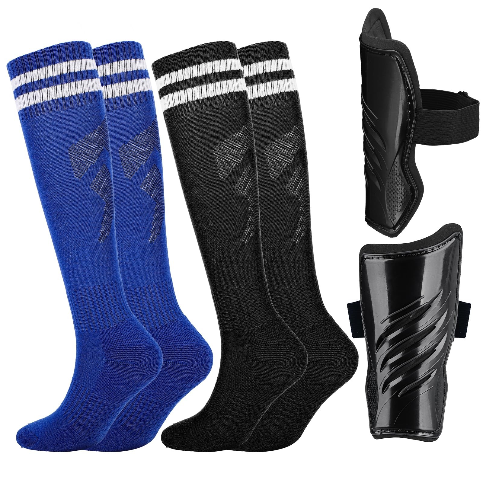 ●Contenu de la livraison : 2 paires de chaussettes de football pour enfants et 1 paire de protège-tibias pour enfants. L'ensemble pratique est conçu pour résister à la pression extérieure pendant le sport et prévenir les chocs possibles et offre aux enfants une protection complète Matériau de qualité supérieure : nos chaussettes de football pour enfants sont composées de 97 % de térylène et 3 % d'élasthanne, sont agréables sur la peau, durables et respirantes.