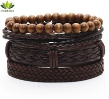 Ensemble de 4 bracelets tendance pour homme en cuir et bois | ✔ Vérifier en magasin | €15.99 |