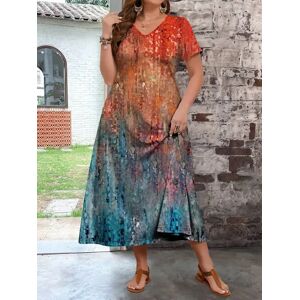 Aucun Robe à col en V à manches courtes pour femmes, grande taille, imprimé floral, t-shirt, jupe, transfrontalier, printemps, été, 2024 | ✔ Vérifier en magasin | €14.29 |