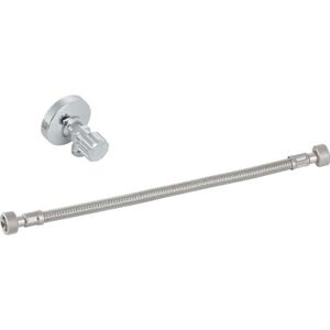 Geberit raccord d'eau AquaClean 147031211 pour raccordement à l'eau 19 5 cm de l'axe central avec couvercle latéral avec passage pour raccordement d'eau externe 2x Tuyaux souples blindés 3/8" couverture rosace pour les réservoirs à encastrer Kappa 15 cm pour les systèmes complets Geberit AquaClean Mera WC