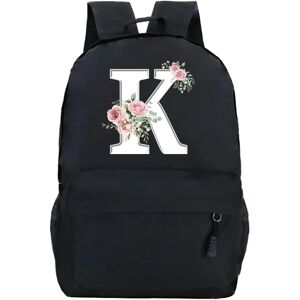 Rose Rose Alphabet sac à dos noir décontracté femmes esthétique sac à dos adolescente garçon fleur lettre sac d'école étudiant Mochilas