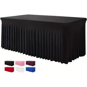 6 pieds, jupes de table rectangulaires, couvertures de table ajustées en polyester, nappe noire pour table de 6 pieds avec jupe, couverture de table en spandex