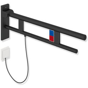 Hewi System 900 bras de support 900.50.19040 porte- WC et version E affleurante de Inox deux parallèles plans ronds de poignées disposés les uns au-dessus des autres peut être replié et freiné sans entretien joint en permanence lisse préréglé en usine à partir d'une inclinaison de 45 °, le bras de support tombe automatiquement en position haute (inclinaison <45 °), une force de frottement définie protège le bras de support contre un abaissement / relâchement involontaire 256 mm de haut et 75 mm de large Oberholm Ø 33 7 mm Espar inférieur Ø 25 mm chargeable jusqu'à 100 kg Plaque murale en polyamide avec âme en acier intégrée et couvercle en allumette Inox avec élément d'étanchéité pour sceller les points de fixation