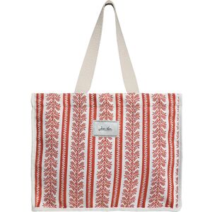 Un sac cabas au style poétique et féminin. Ses motifs floraux en tissage Jacquard dans les teintes rouges orangées contrastent avec un fond écru. Ses hanses en coton vous offrent un grand confort tout au long de la journée.