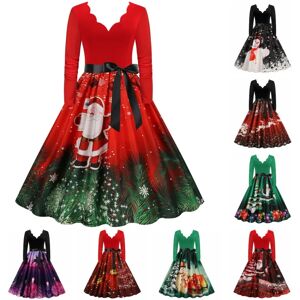 Aucun Robe vintage élégante à manches longues pour femmes, col en V, imprimé, grande balançoire, fête de Noël, nouvel an, vêtements d'hiver, S ~ 3XL | ✔ Vérifier en magasin | €9.29 |