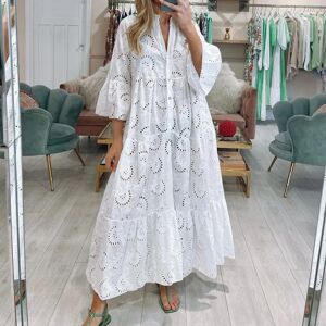 Aucun Robe d'été ajourée pour femmes, coupe ample, élégante, Vintage, couleur unie, broderie décontractée, col en v, manches évasées, Maxi, XXS-3XL | ✔ Vérifier en magasin | €25.99 |