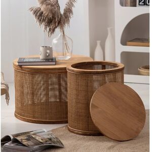 Table basse japonaise ronde en rotin tissé à la main avec rangement pour salon, table à thé
