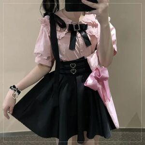 Aucun Japonais doux Lolita jupe courte à bretelles femme filles mignon dentelle manches bouffantes Kawaii volants nœud a-ligne Mini jupes | ✔ Vérifier en magasin | €9.39 |
