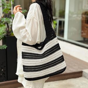 Yogodlns Sac à bandoulière esthétique pour femmes, fourre-tout tricoté de couleur contrastée, sac à main ajouré à rayures en tricot, sac tissé pour femmes | ✔ Vérifier en magasin | €7.19 |