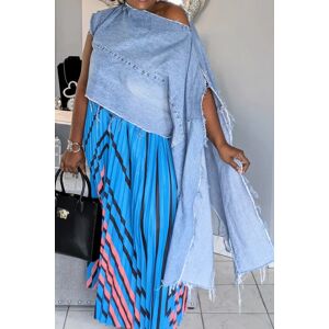 Aucun Veste en jean à col oblique bleu quotidien, grande taille, manches chauve-souris, manches longues, ourlet irrégulier fendu | ✔ Vérifier en magasin | €25.79 |