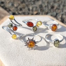 Vente En Gros Lot De 5 Anneaux En Ambre Baltique Et En Argent Sterling 925