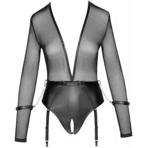 Laissez votre partenaire diriger votre soirée érotique avec ce Body Ouvert Anneaux & Menottes Noir de la marque Cottelli Collection ! D'un érotisme séduisant, ce body à manches longues deviendra votre nouvelle lingerie préférée pour des soirées torrides sans aucune limite ! Sa partie supérieure en maille transparente et bordures noires sera dotée d'un décolleté échancré jusqu'à la taille et dévoilera votre poitrine dans un cache-cache sensuel qui ébranlera sans aucun doute le calme de votre partenaire. Le bas du body s'appropriera une coupe de culotte taille haute en simili cuir avec ouverture à l'entrejambe et quatre bretelles réglables pour y attacher vos bas favoris. Une fine ceinture agrémentée d'anneaux métalliques, dont deux rattachés à des menottes par des chaînettes argentées, soulignera votre taille pour une silhouette affriolante. Composition : 90% Polyester, 10% Élasthanne Tailles S, M, L, XL.