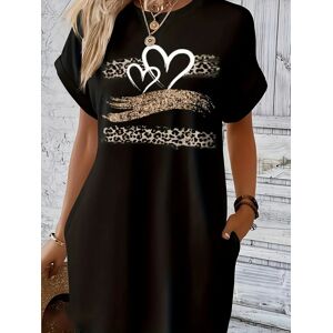 Aucun Robe t-shirt décontractée en tricot pour femmes, avec imprimé cœur, col rond, manches courtes, haut à la mode, noir avec motif de drapeau coloré | ✔ Vérifier en magasin | €9.99 |