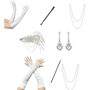 Aucun Ensemble de gants en plumes blanches Gatsby des années 1920, ensemble d'accessoires de mariée, robe à clapet pour fille, bandeau, tige de fumée, collier, boucles d'oreilles | ✔ Vérifier en magasin | €12.29 |