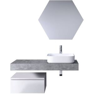 AQA DESIGN Meuble de salle de bain 4 pièces en mélamine ciment/blanc