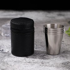 NONE Ensemble de tasses en acier inoxydable, pratiques pour voyage en plein air, Mini verres pour whisky, vin, avec étui, verres portables 30/70ml, 4/6 pièces