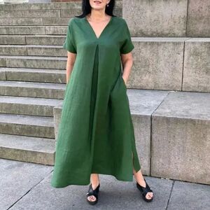 Aucun Femme L-5XL Grande Taille Printemps/Été Grande Taille adt Coton et Chanvre Manches Courtes Mode Robe Col V Solide Document Décontracté | ✔ Vérifier en magasin | €14.79 |