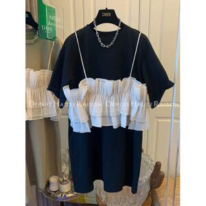 Aucun T-shirt à manches courtes épissé à bretelles volantées pour femme, robe de niche deux pièces | ✔ Vérifier en magasin | €18.69 |