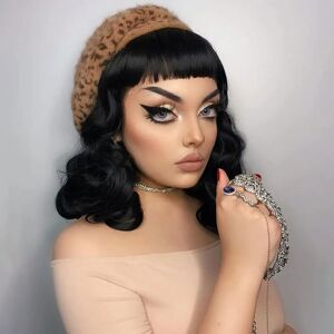 Aucun Tereshar-Perruque Synthétique Noire Courte avec Frange pour Femme, Perruques Vintage Rockabilly, Degré de Chaleur, Courte Bouclée, Bettie Page | ✔ Vérifier en magasin | €14.49 |