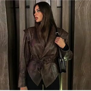 Aucun Veste en similicuir vintage pour femme, manches longues, col en V, chaud, court, à lacets, automne, femme, rue haute, automne, 2024 | ✔ Vérifier en magasin | €24.19 |