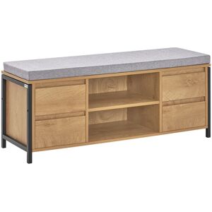 Matériau: effet bois. Emballage: Carton nid d'abeille écologique 100% recyclé.Dimensions : L104 x P24 x H52 cm.Capacité Max :150kg. Poids de l'envoi : 18,5 kg.Coussin rembourré, pour une assise confortable au moment de se chausser ou de se déchausser.Parfait pour votre appartement ou votre maison, à l'entrée, à la chambre, à la salle de séjour, etc.
